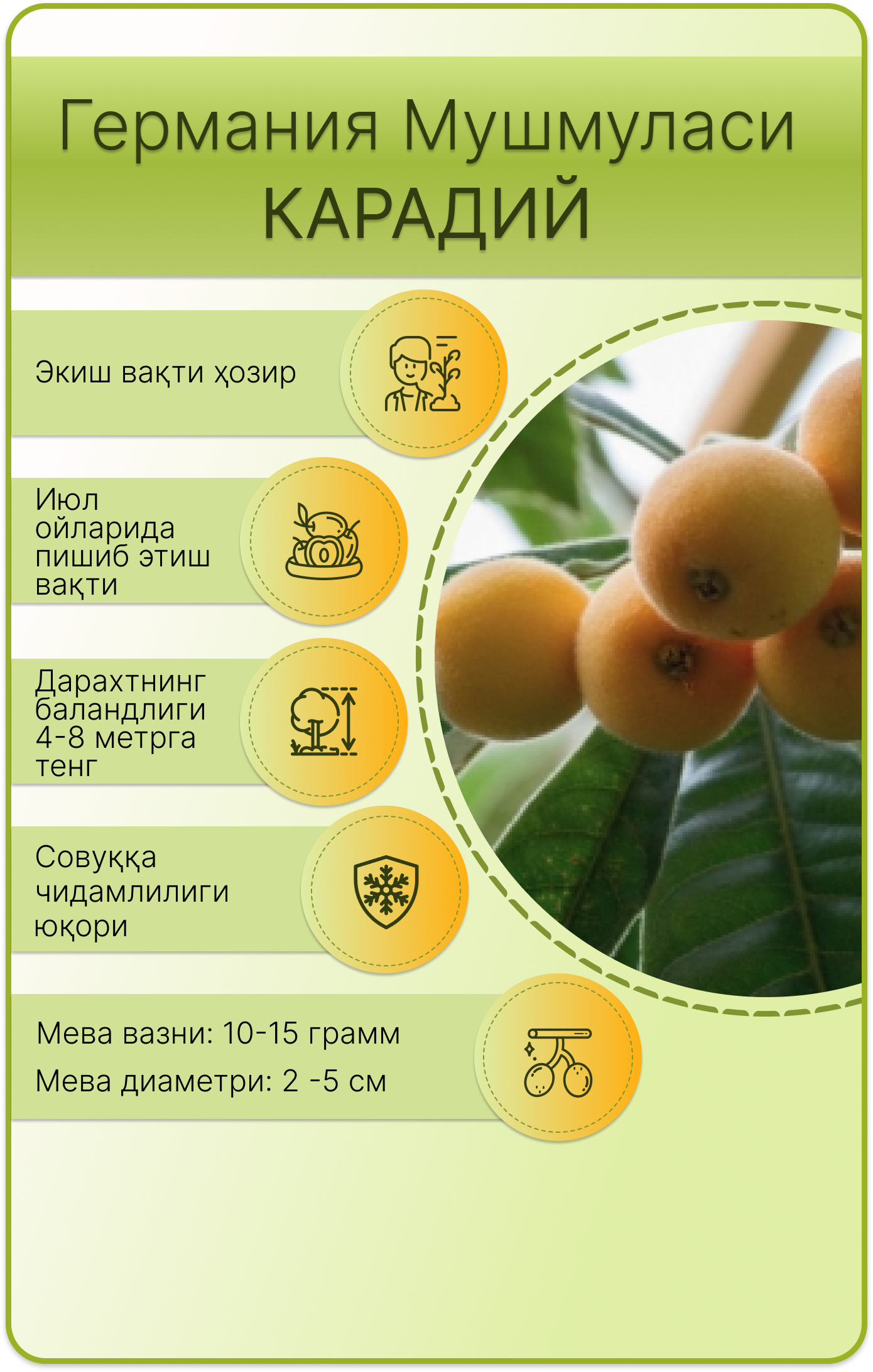 <span color-type="color" style="color: #5e6918;">Нима учун сиздан мушмула кўчатларини танлашингиз лозим?</span><br>